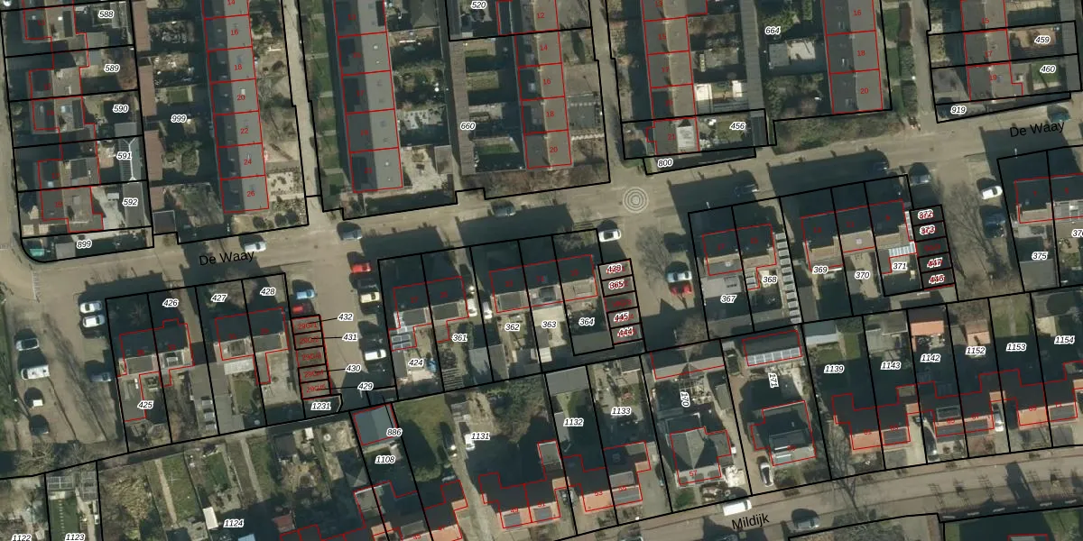 Het perceel waarop De Waay 21 staat heeft een oppervlakte van 197 m². Dit is een middelgroot perceel. De perceeloppervlakte wordt geregistreerd door het Kadaster. Gedetailleerde informatie over de maten van dit perceel kunt u vinden in het rapport Kadastrale kaart met maatvoering van De Waay 21.