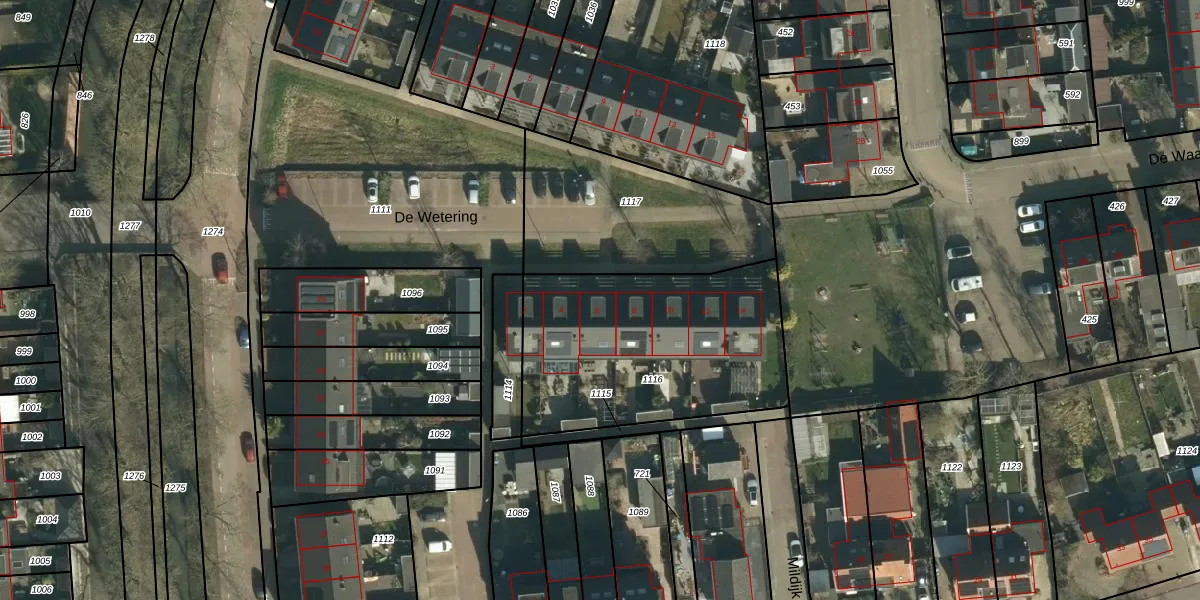 Het perceel waarop De Wetering 6 staat heeft een oppervlakte van 1082 m². Dit is een zeer groot perceel. De perceeloppervlakte wordt geregistreerd door het Kadaster. Gedetailleerde informatie over de maten van dit perceel kunt u vinden in het rapport Kadastrale kaart met maatvoering van De Wetering 6.