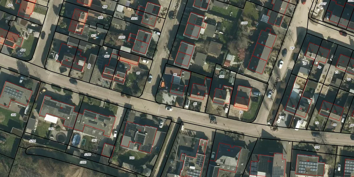 Het perceel waarop Enk 37 staat heeft een oppervlakte van 344 m². Dit is een groot perceel. De perceeloppervlakte wordt geregistreerd door het Kadaster. Gedetailleerde informatie over de maten van dit perceel kunt u vinden in het rapport Kadastrale kaart met maatvoering van Enk 37.