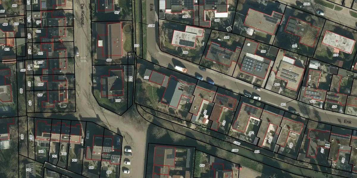 Het perceel waarop Enk 4 staat heeft een oppervlakte van 806 m². Dit is een groot perceel. De perceeloppervlakte wordt geregistreerd door het Kadaster. Gedetailleerde informatie over de maten van dit perceel kunt u vinden in het rapport Kadastrale kaart met maatvoering van Enk 4.