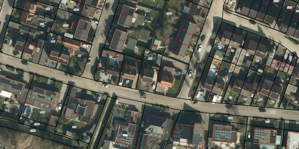 Het perceel waarop Enk 41 staat heeft een oppervlakte van 339 m². Dit is een groot perceel. De perceeloppervlakte wordt geregistreerd door het Kadaster. Gedetailleerde informatie over de maten van dit perceel kunt u vinden in het rapport Kadastrale kaart met maatvoering van Enk 41.