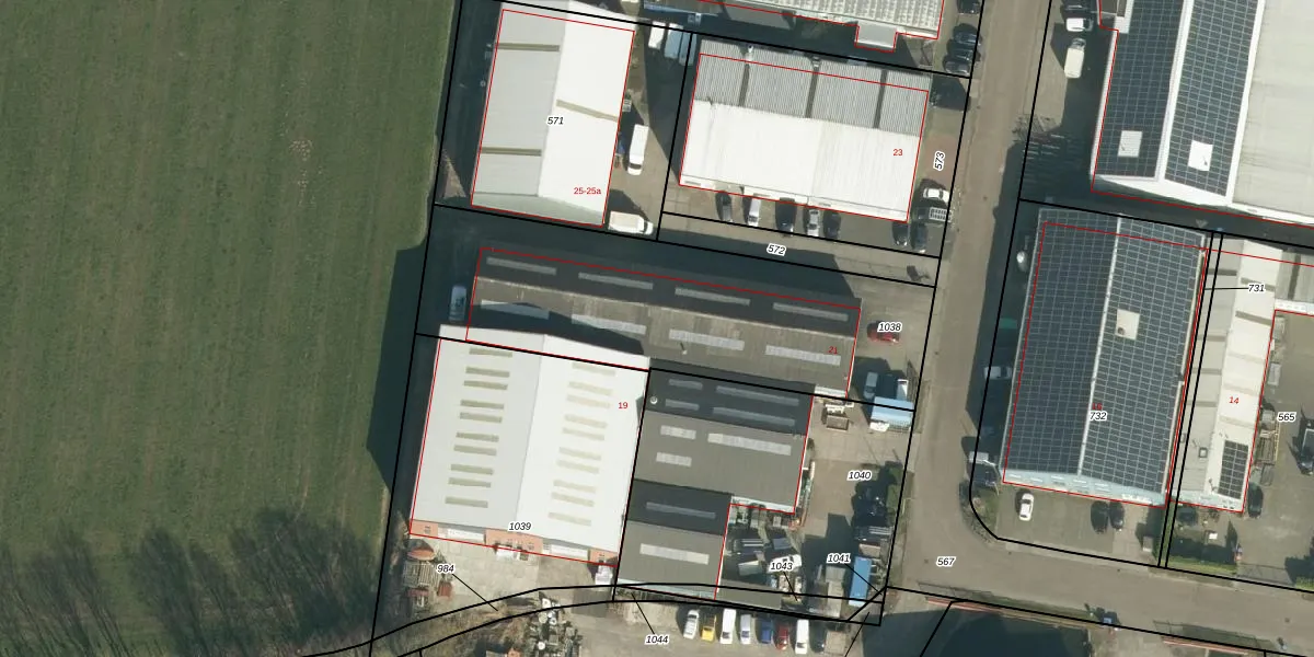 Het perceel waarop Industrieweg 21 staat heeft een oppervlakte van 1483 m². Dit is een zeer groot perceel. De perceeloppervlakte wordt geregistreerd door het Kadaster. Gedetailleerde informatie over de maten van dit perceel kunt u vinden in het rapport Kadastrale kaart met maatvoering van Industrieweg 21.