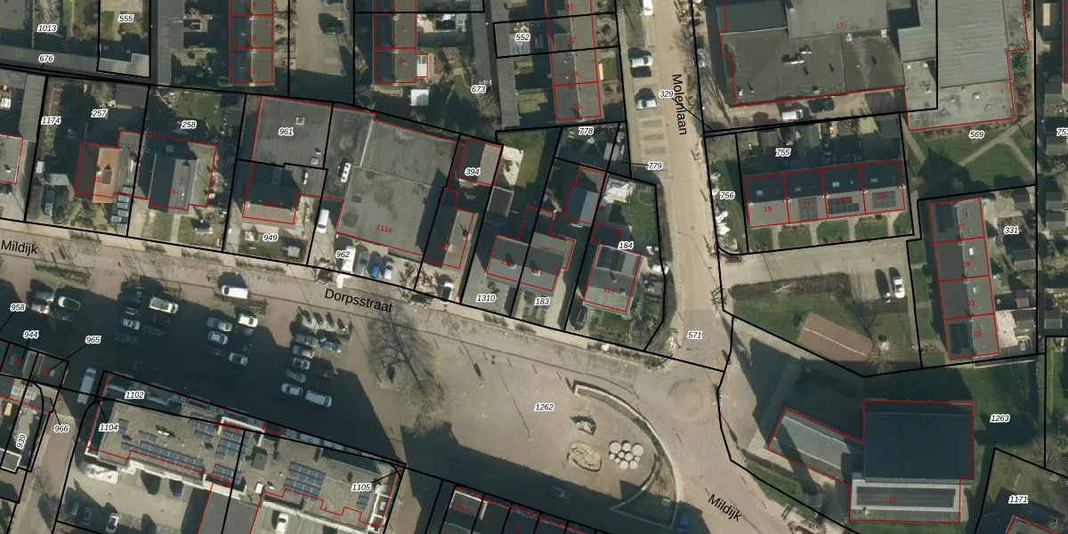 Gebruik de zoekbalk of klik op een perceel voor informatie over de adressen binnen dit perceel.