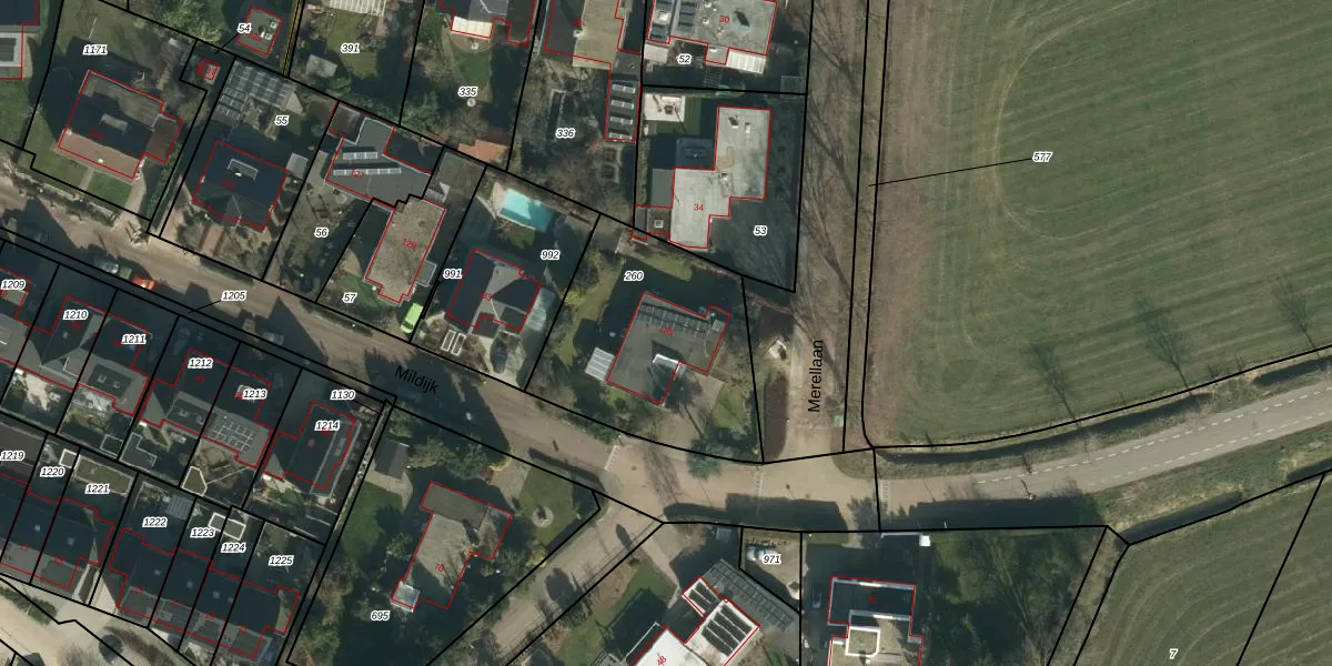 Het perceel waarop Mildijk 135 staat heeft een oppervlakte van 843 m². Dit is een groot perceel. De perceeloppervlakte wordt geregistreerd door het Kadaster. Gedetailleerde informatie over de maten van dit perceel kunt u vinden in het rapport Kadastrale kaart met maatvoering van Mildijk 135.