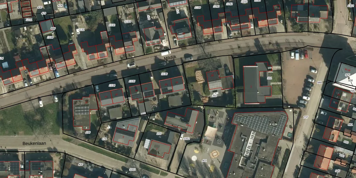Het perceel waarop Mildijk 24 staat heeft een oppervlakte van 596 m². Dit is een groot perceel. De perceeloppervlakte wordt geregistreerd door het Kadaster. Gedetailleerde informatie over de maten van dit perceel kunt u vinden in het rapport Kadastrale kaart met maatvoering van Mildijk 24.