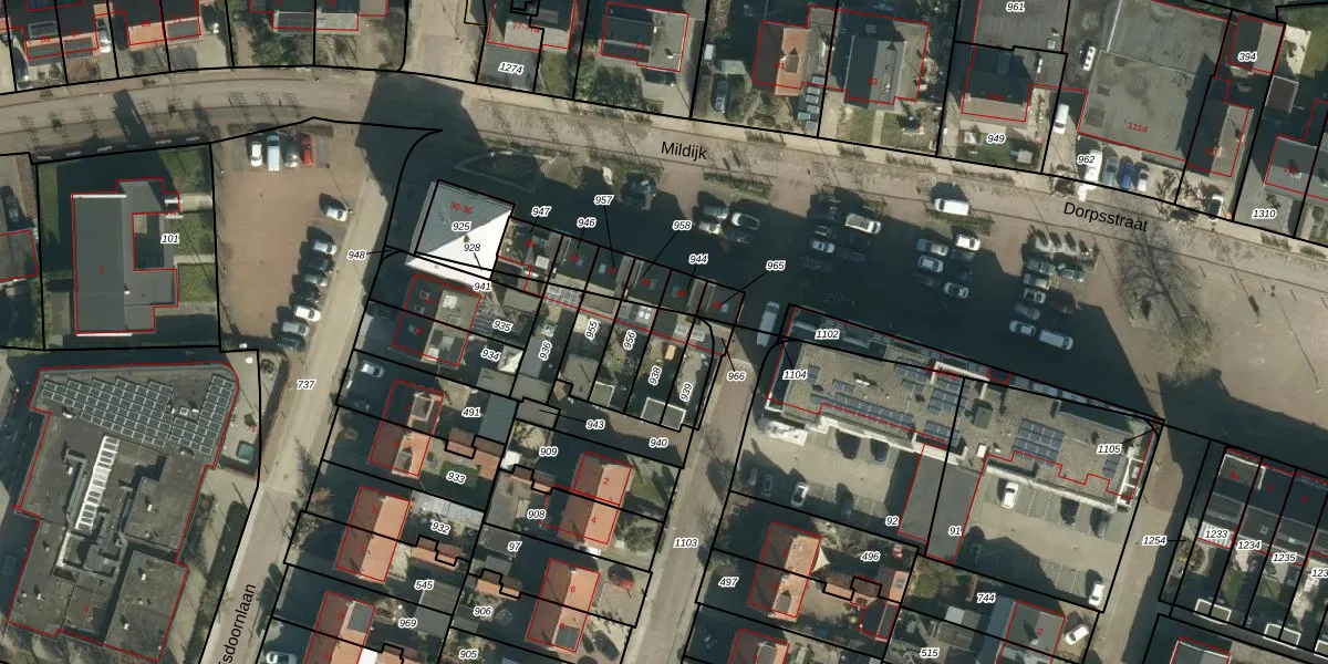 Het perceel waarop Mildijk 46 staat heeft een oppervlakte van 94 m². Dit is een klein perceel. De perceeloppervlakte wordt geregistreerd door het Kadaster. Gedetailleerde informatie over de maten van dit perceel kunt u vinden in het rapport Kadastrale kaart met maatvoering van Mildijk 46.