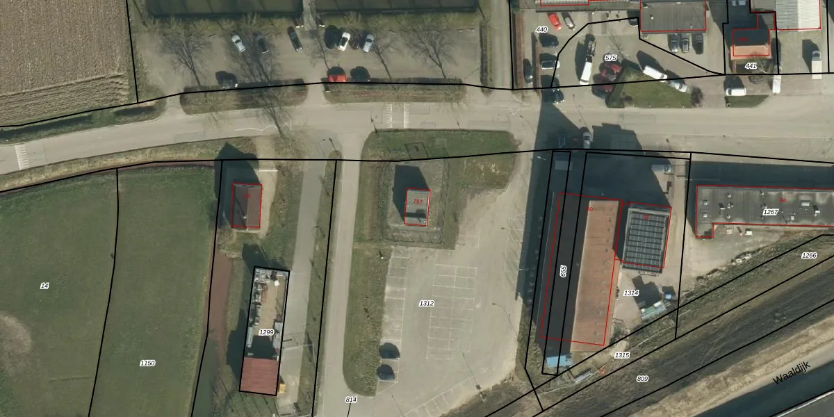 Het adres is gelegen op perceel 1312 in de sectie R en de kadastrale gemeente Vuren. De kadastrale aanduiding is aldus VRN00-R-1312. Het perceel is kleiner dan gemiddeld in Vuren. Het perceel is 3323 m² groot, terwijl het gemiddelde ligt op 8255,97 m². Het grootste perceel in de kadastrale gemeente is 31,9 ha. Het kleinste perceel heeft een oppervlakte van 0 m². Er zijn geen andere adressen aanwezig op het perceel. In de Basisregistratie Kadaster (BRK) werden de grenzen van het perceel geregistreerd op 18-06-2025.