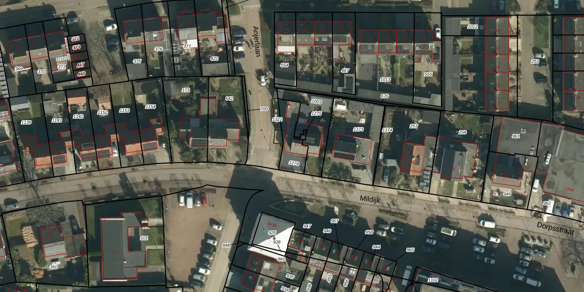 Gebruik de zoekbalk of klik op een perceel voor informatie over de adressen binnen dit perceel.