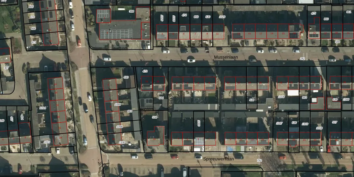 Het perceel waarop Mussenlaan 2 staat heeft een oppervlakte van 2918 m². Dit is een zeer groot perceel. De perceeloppervlakte wordt geregistreerd door het Kadaster. Gedetailleerde informatie over de maten van dit perceel kunt u vinden in het rapport Kadastrale kaart met maatvoering van Mussenlaan 2.