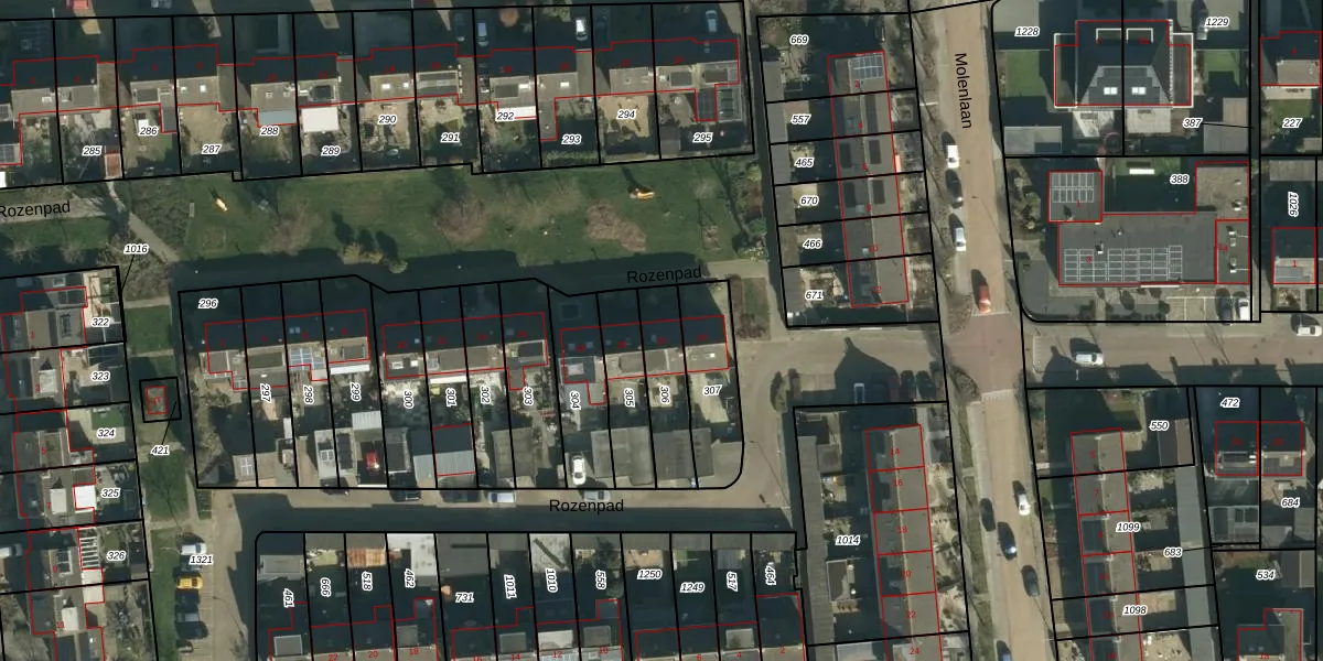 Het perceel waarop Rozenpad 22 staat heeft een oppervlakte van 185 m². Dit is een middelgroot perceel. De perceeloppervlakte wordt geregistreerd door het Kadaster. Gedetailleerde informatie over de maten van dit perceel kunt u vinden in het rapport Kadastrale kaart met maatvoering van Rozenpad 22.