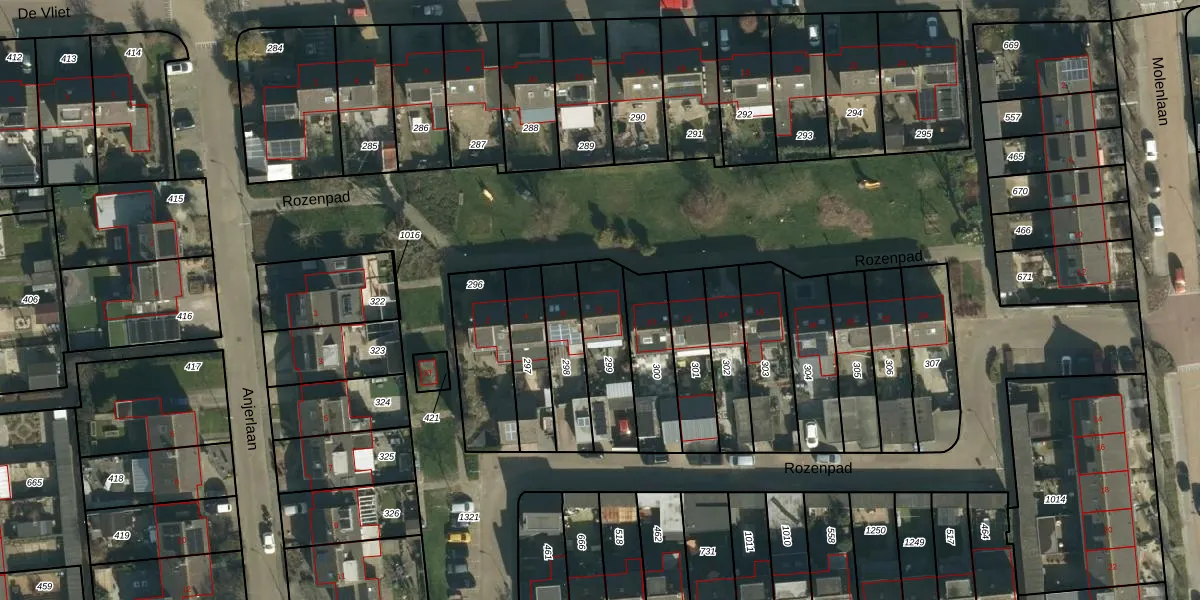 Het perceel waarop Rozenpad 8 staat heeft een oppervlakte van 233 m². Dit is een middelgroot perceel. De perceeloppervlakte wordt geregistreerd door het Kadaster. Gedetailleerde informatie over de maten van dit perceel kunt u vinden in het rapport Kadastrale kaart met maatvoering van Rozenpad 8.