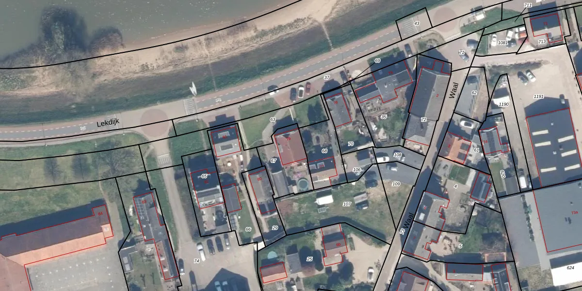 Gebruik de zoekbalk of klik op een perceel voor informatie over de adressen binnen dit perceel.