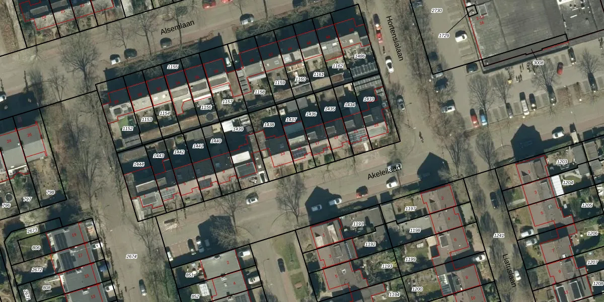 Gebruik de zoekbalk of klik op een perceel voor informatie over de adressen binnen dit perceel.
