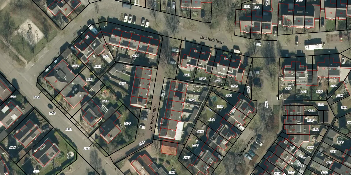 Andoornlaan 12 is gelegen op kadastraal perceel AAL01E2551. Deze kadastrale aanduiding is uniek en wordt gebruikt door het Kadaster om eigendomsrechten en andere zakelijke rechten vast te leggen. Het perceel maakt onderdeel uit van de kadastrale gemeente Aalst Noord-Brabant.