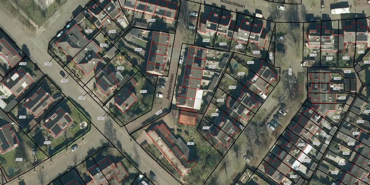 Het perceel waarop Andoornlaan 4 staat heeft een oppervlakte van 841 m². Dit is een groot perceel. De perceeloppervlakte wordt geregistreerd door het Kadaster. Gedetailleerde informatie over de maten van dit perceel kunt u vinden in het rapport Kadastrale kaart met maatvoering van Andoornlaan 4.