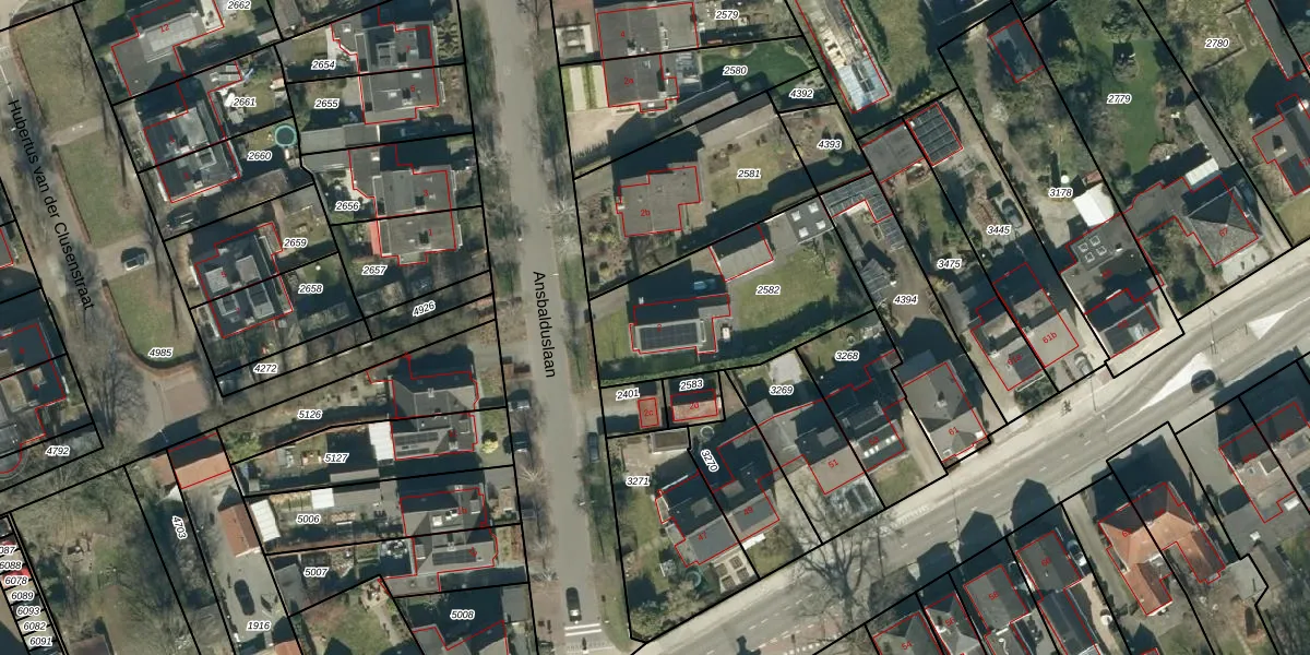 Het perceel waarop Ansbalduslaan 2 staat heeft een oppervlakte van 740 m². Dit is een groot perceel. De perceeloppervlakte wordt geregistreerd door het Kadaster. Gedetailleerde informatie over de maten van dit perceel kunt u vinden in het rapport Kadastrale kaart met maatvoering van Ansbalduslaan 2.