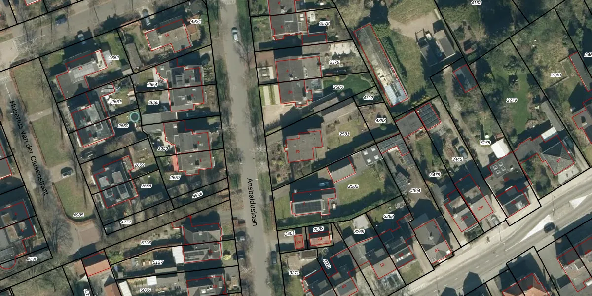 Het perceel waarop Ansbalduslaan 2-b staat heeft een oppervlakte van 642 m². Dit is een groot perceel. De perceeloppervlakte wordt geregistreerd door het Kadaster. Gedetailleerde informatie over de maten van dit perceel kunt u vinden in het rapport Kadastrale kaart met maatvoering van Ansbalduslaan 2-b.