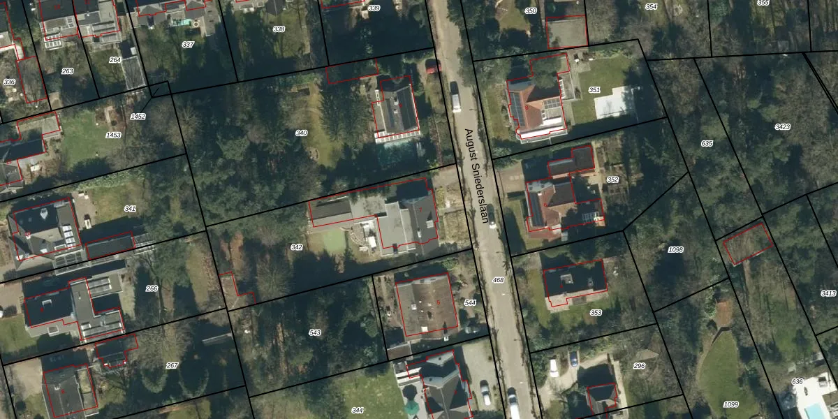 Het perceel waarop August Sniederslaan 7 staat heeft een oppervlakte van 1280 m². Dit is een zeer groot perceel. De perceeloppervlakte wordt geregistreerd door het Kadaster. Gedetailleerde informatie over de maten van dit perceel kunt u vinden in het rapport Kadastrale kaart met maatvoering van August Sniederslaan 7.