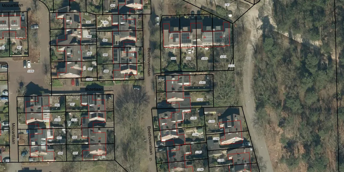 Beethovenlaan 1 is gelegen op kadastraal perceel AAL01C1002. Deze kadastrale aanduiding is uniek en wordt gebruikt door het Kadaster om eigendomsrechten en andere zakelijke rechten vast te leggen. Het perceel maakt onderdeel uit van de kadastrale gemeente Aalst Noord-Brabant.