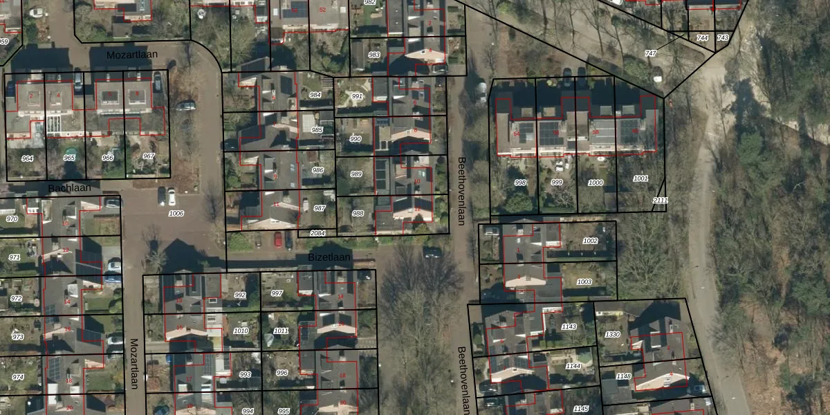 Het perceel waarop Beethovenlaan 12 staat heeft een oppervlakte van 259 m². Dit is een middelgroot perceel. De perceeloppervlakte wordt geregistreerd door het Kadaster. Gedetailleerde informatie over de maten van dit perceel kunt u vinden in het rapport Kadastrale kaart met maatvoering van Beethovenlaan 12.