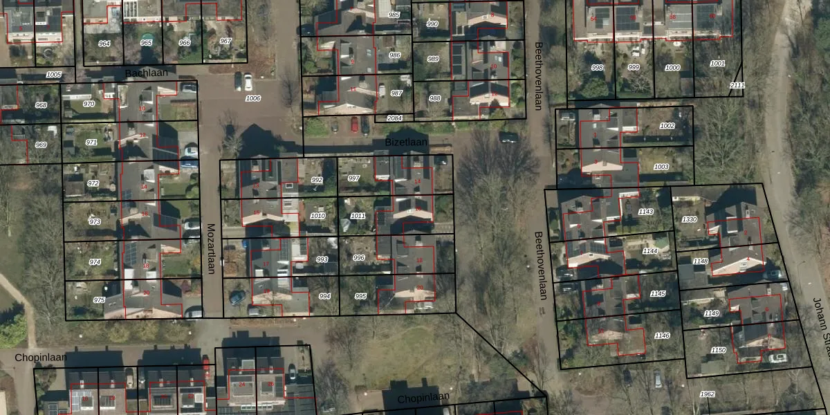 Het perceel waarop Beethovenlaan 16 staat heeft een oppervlakte van 265 m². Dit is een middelgroot perceel. De perceeloppervlakte wordt geregistreerd door het Kadaster. Gedetailleerde informatie over de maten van dit perceel kunt u vinden in het rapport Kadastrale kaart met maatvoering van Beethovenlaan 16.
