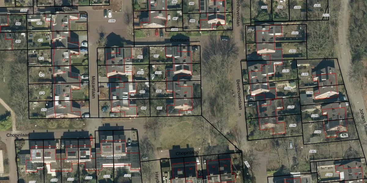 Het perceel waarop Beethovenlaan 18 staat heeft een oppervlakte van 267 m². Dit is een middelgroot perceel. De perceeloppervlakte wordt geregistreerd door het Kadaster. Gedetailleerde informatie over de maten van dit perceel kunt u vinden in het rapport Kadastrale kaart met maatvoering van Beethovenlaan 18.
