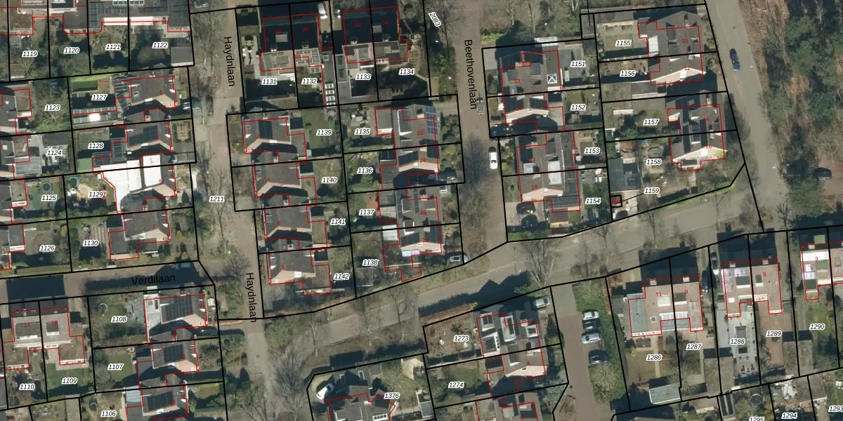 Het perceel waarop Beethovenlaan 26 staat heeft een oppervlakte van 249 m². Dit is een middelgroot perceel. De perceeloppervlakte wordt geregistreerd door het Kadaster. Gedetailleerde informatie over de maten van dit perceel kunt u vinden in het rapport Kadastrale kaart met maatvoering van Beethovenlaan 26.