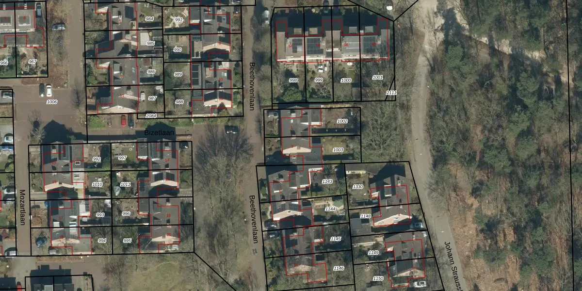 Gebruik de zoekbalk of klik op een perceel voor informatie over de adressen binnen dit perceel.