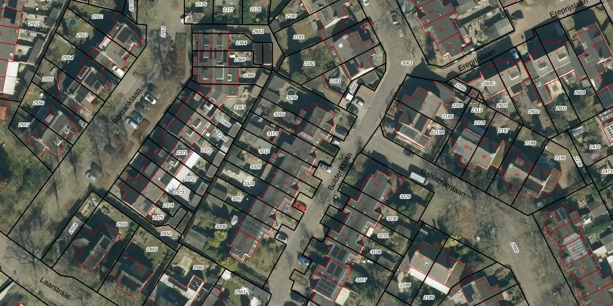 Het perceel waarop Bolderiklaan 17 staat heeft een oppervlakte van 182 m². Dit is een middelgroot perceel. De perceeloppervlakte wordt geregistreerd door het Kadaster. Gedetailleerde informatie over de maten van dit perceel kunt u vinden in het rapport Kadastrale kaart met maatvoering van Bolderiklaan 17.