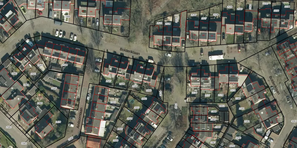 Het perceel waarop Bolderiklaan 39 staat heeft een oppervlakte van 246 m². Dit is een middelgroot perceel. De perceeloppervlakte wordt geregistreerd door het Kadaster. Gedetailleerde informatie over de maten van dit perceel kunt u vinden in het rapport Kadastrale kaart met maatvoering van Bolderiklaan 39.