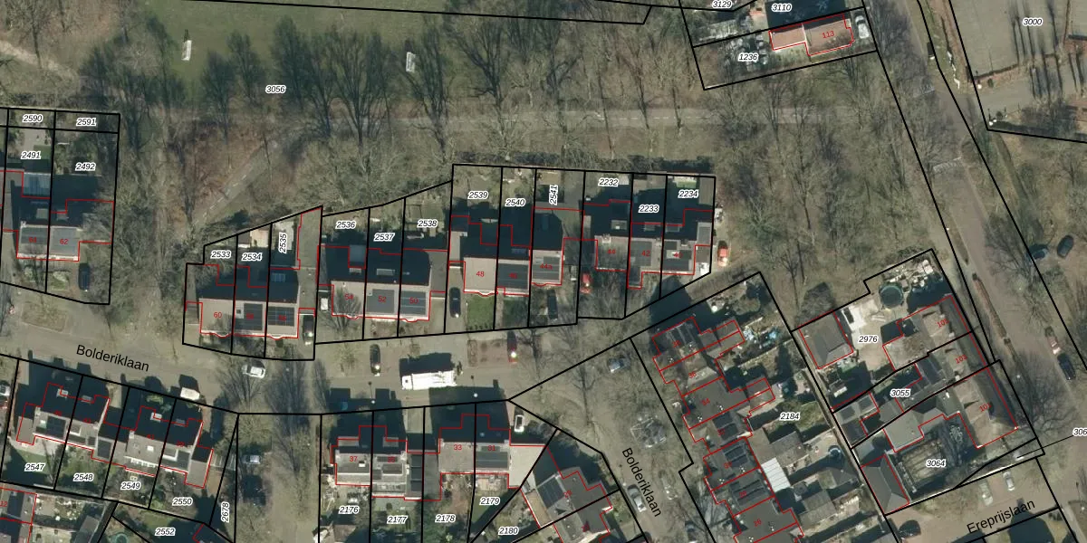 Bolderiklaan 44-a is gelegen op kadastraal perceel AAL01E2541. Deze kadastrale aanduiding is uniek en wordt gebruikt door het Kadaster om eigendomsrechten en andere zakelijke rechten vast te leggen. Het perceel maakt onderdeel uit van de kadastrale gemeente Aalst Noord-Brabant.
