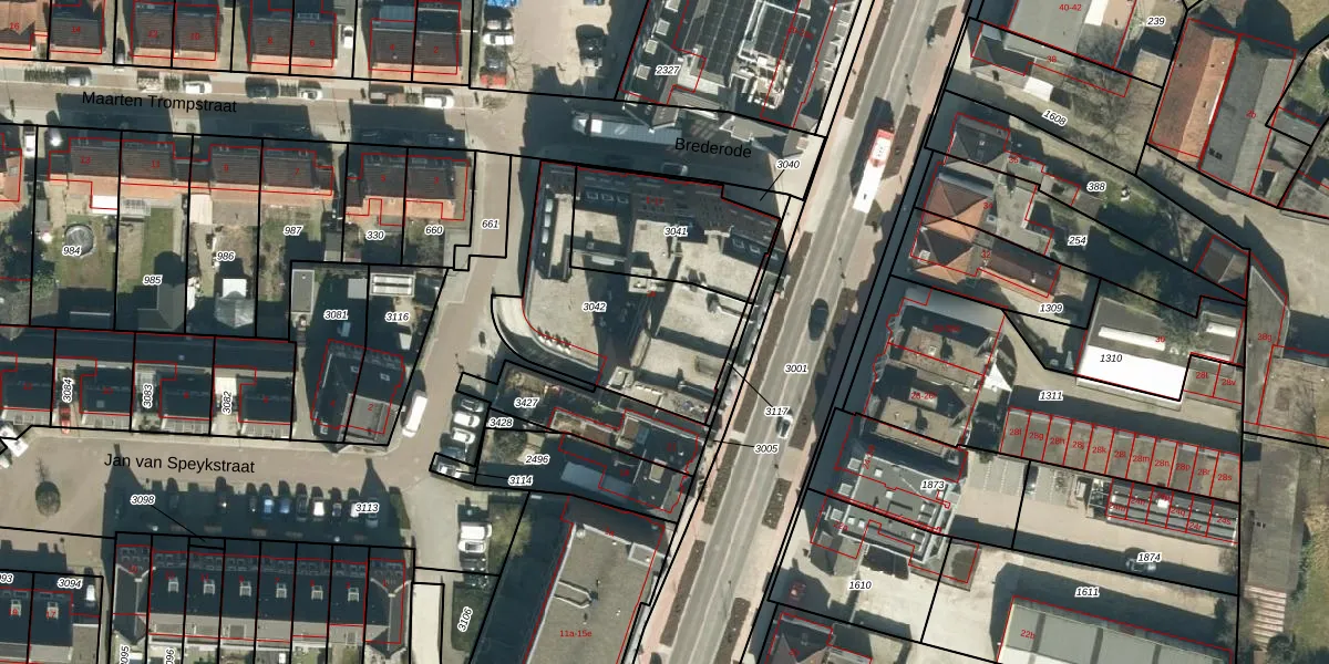 Het perceel waarop Brederode 1-e staat heeft een oppervlakte van 675 m². Dit is een groot perceel. De perceeloppervlakte wordt geregistreerd door het Kadaster. Gedetailleerde informatie over de maten van dit perceel kunt u vinden in het rapport Kadastrale kaart met maatvoering van Brederode 1-e.