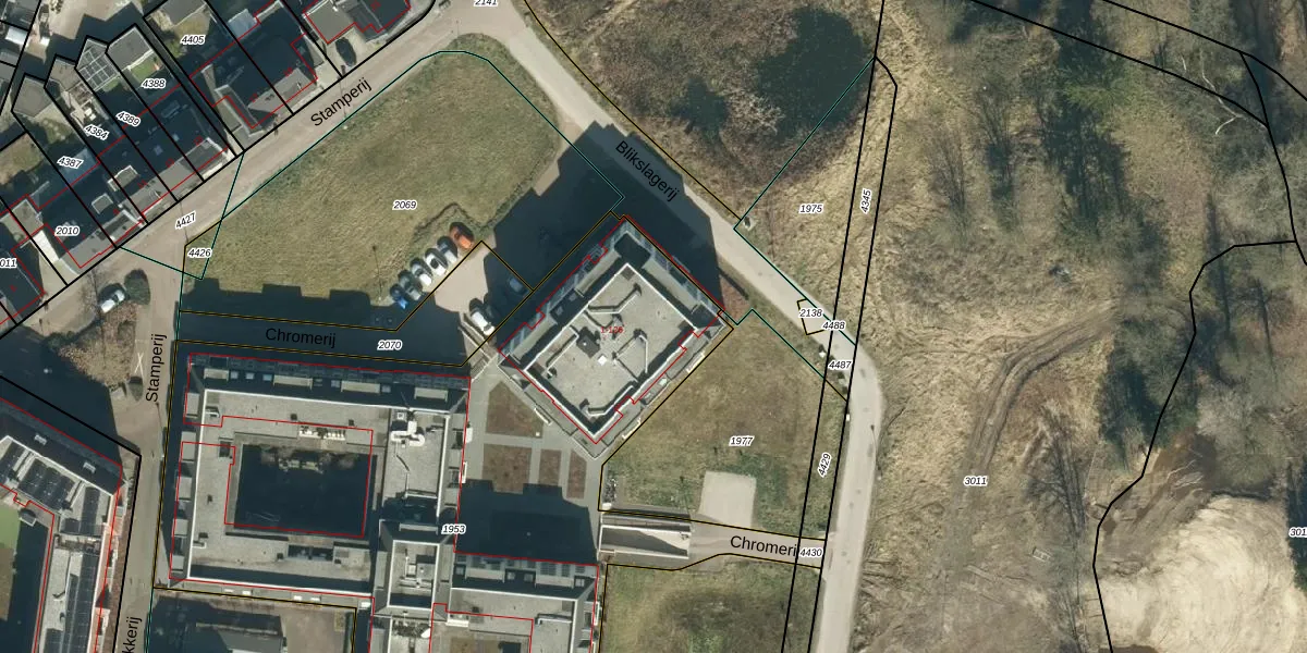 Het perceel waarop Chromerij 25 staat heeft een oppervlakte van 4859 m². Dit is een zeer groot perceel. De perceeloppervlakte wordt geregistreerd door het Kadaster. Gedetailleerde informatie over de maten van dit perceel kunt u vinden in het rapport Kadastrale kaart met maatvoering van Chromerij 25.