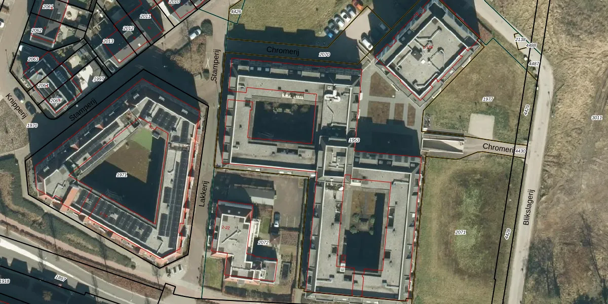 Het perceel waarop Chromerij 60 staat heeft een oppervlakte van 4859 m². Dit is een zeer groot perceel. De perceeloppervlakte wordt geregistreerd door het Kadaster. Gedetailleerde informatie over de maten van dit perceel kunt u vinden in het rapport Kadastrale kaart met maatvoering van Chromerij 60.