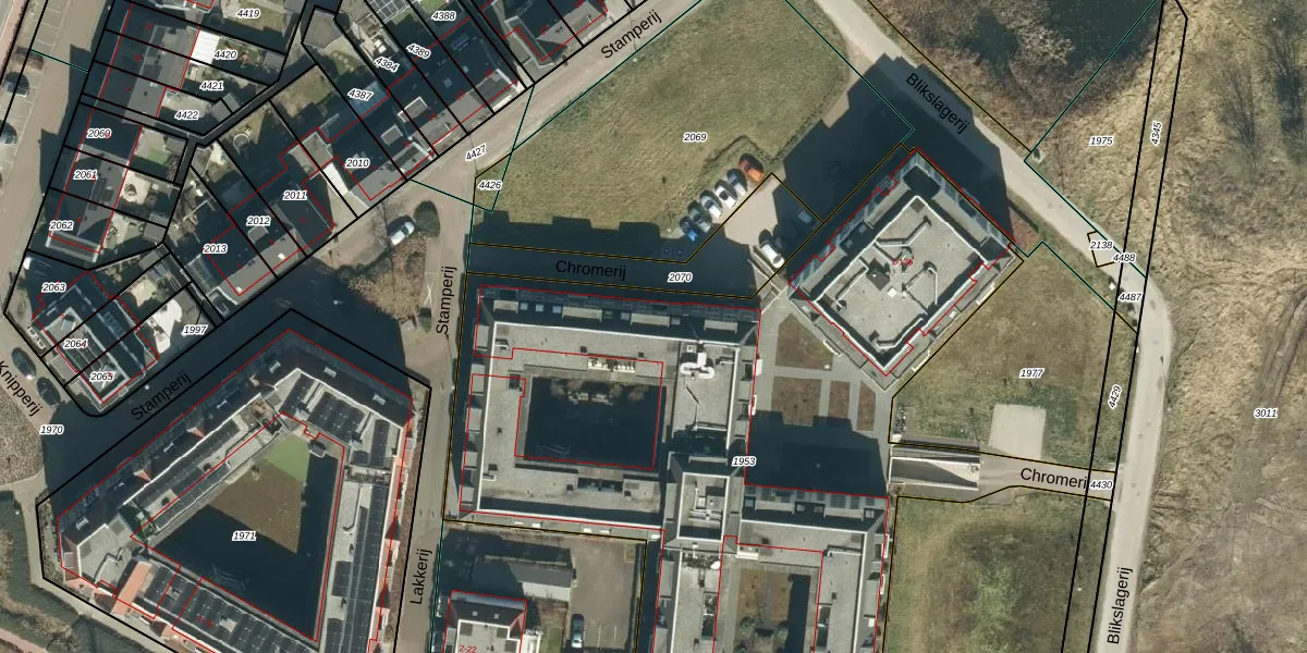 Het perceel waarop Chromerij 88 staat heeft een oppervlakte van 4859 m². Dit is een zeer groot perceel. De perceeloppervlakte wordt geregistreerd door het Kadaster. Gedetailleerde informatie over de maten van dit perceel kunt u vinden in het rapport Kadastrale kaart met maatvoering van Chromerij 88.