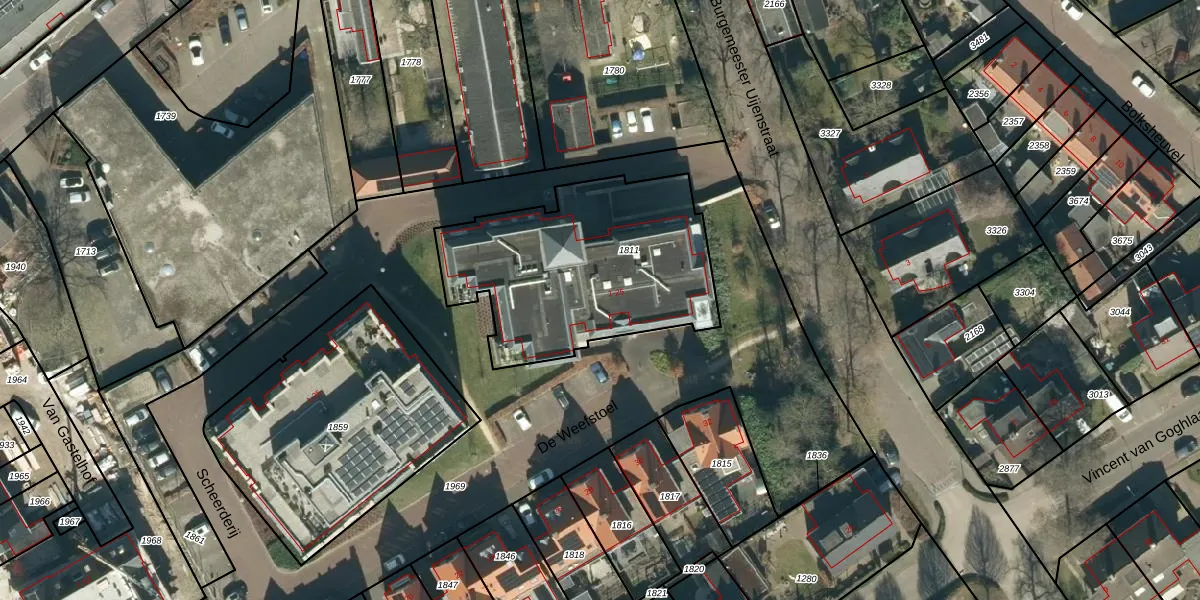 De Weefstoel 9 is gelegen op kadastraal perceel WRE02C1811. Deze kadastrale aanduiding is uniek en wordt gebruikt door het Kadaster om eigendomsrechten en andere zakelijke rechten vast te leggen. Het perceel maakt onderdeel uit van de kadastrale gemeente Waalre.