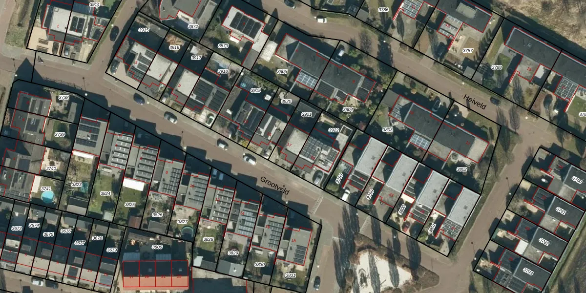 Het perceel waarop Grootveld 17 staat heeft een oppervlakte van 201 m². Dit is een middelgroot perceel. De perceeloppervlakte wordt geregistreerd door het Kadaster. Gedetailleerde informatie over de maten van dit perceel kunt u vinden in het rapport Kadastrale kaart met maatvoering van Grootveld 17.
