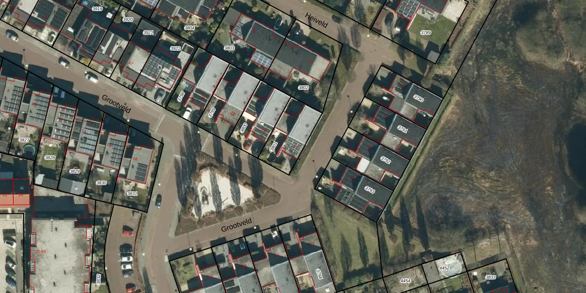Het perceel waarop Grootveld 27 staat heeft een oppervlakte van 290 m². Dit is een middelgroot perceel. De perceeloppervlakte wordt geregistreerd door het Kadaster. Gedetailleerde informatie over de maten van dit perceel kunt u vinden in het rapport Kadastrale kaart met maatvoering van Grootveld 27.
