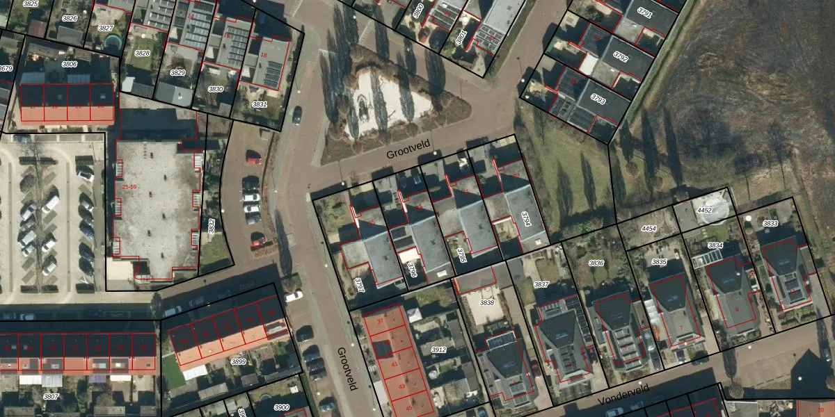 Het perceel waarop Grootveld 33 staat heeft een oppervlakte van 334 m². Dit is een groot perceel. De perceeloppervlakte wordt geregistreerd door het Kadaster. Gedetailleerde informatie over de maten van dit perceel kunt u vinden in het rapport Kadastrale kaart met maatvoering van Grootveld 33.
