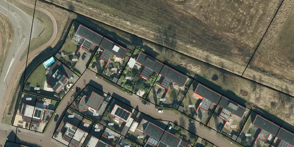Het perceel waarop Heiveld 7 staat heeft een oppervlakte van 629 m². Dit is een groot perceel. De perceeloppervlakte wordt geregistreerd door het Kadaster. Gedetailleerde informatie over de maten van dit perceel kunt u vinden in het rapport Kadastrale kaart met maatvoering van Heiveld 7.
