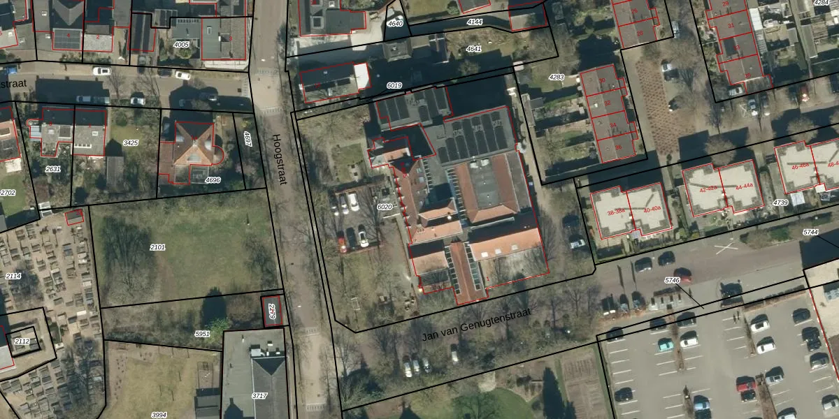 Het perceel waarop Hoogstraat 8-c-6 staat heeft een oppervlakte van 3019 m². Dit is een zeer groot perceel. De perceeloppervlakte wordt geregistreerd door het Kadaster. Gedetailleerde informatie over de maten van dit perceel kunt u vinden in het rapport Kadastrale kaart met maatvoering van Hoogstraat 8-c-6.
