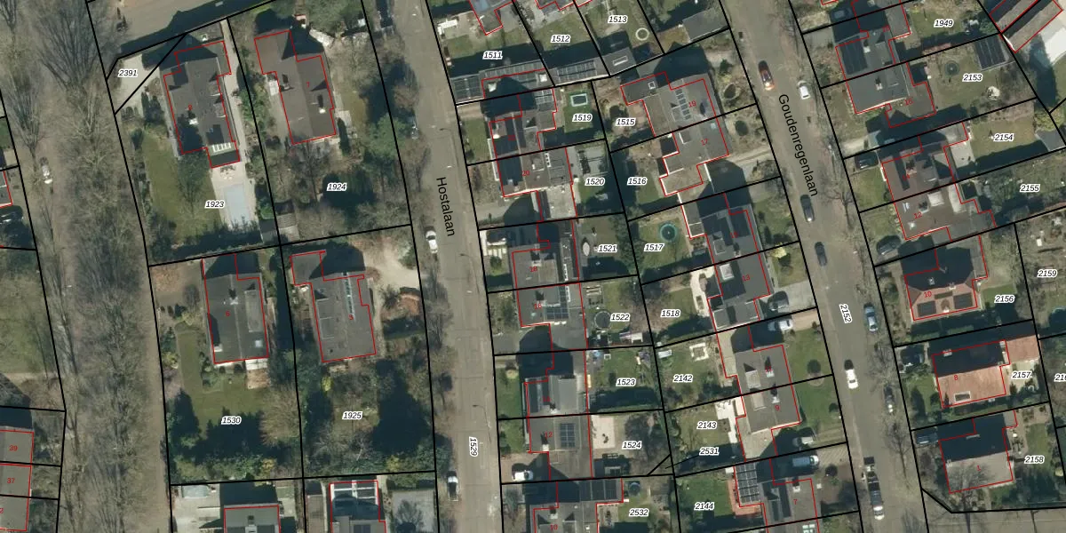 Het perceel waarop Hostalaan 18 staat heeft een oppervlakte van 342 m². Dit is een groot perceel. De perceeloppervlakte wordt geregistreerd door het Kadaster. Gedetailleerde informatie over de maten van dit perceel kunt u vinden in het rapport Kadastrale kaart met maatvoering van Hostalaan 18.