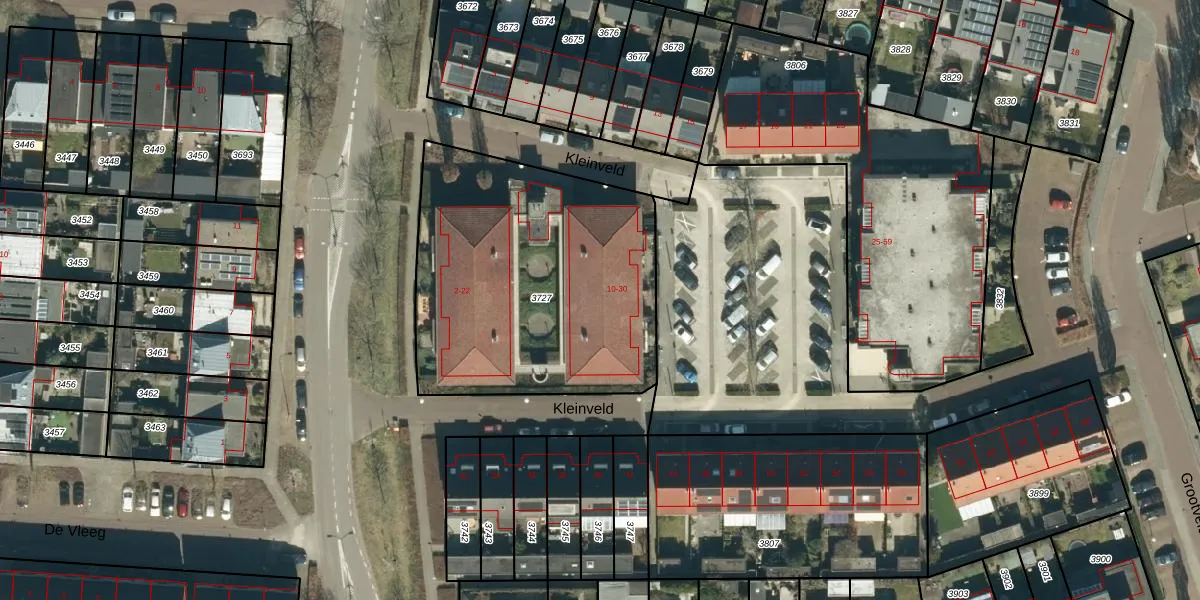 Kleinveld 12 is gelegen op kadastraal perceel AAL01A3727. Deze kadastrale aanduiding is uniek en wordt gebruikt door het Kadaster om eigendomsrechten en andere zakelijke rechten vast te leggen. Het perceel maakt onderdeel uit van de kadastrale gemeente Aalst Noord-Brabant.