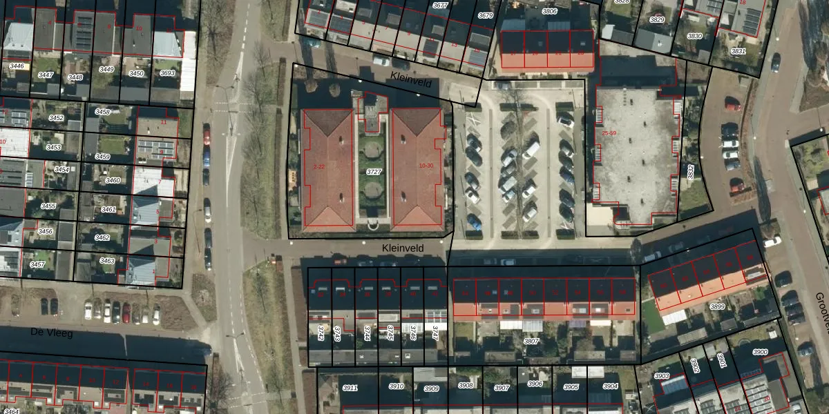 Kleinveld 24 is gelegen op kadastraal perceel AAL01A3727. Deze kadastrale aanduiding is uniek en wordt gebruikt door het Kadaster om eigendomsrechten en andere zakelijke rechten vast te leggen. Het perceel maakt onderdeel uit van de kadastrale gemeente Aalst Noord-Brabant.