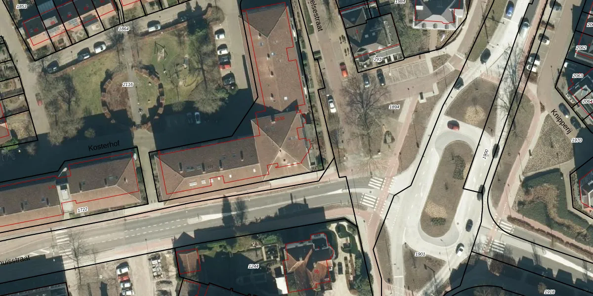 Het perceel waarop Kosterhof 38 staat heeft een oppervlakte van 1816 m². Dit is een zeer groot perceel. De perceeloppervlakte wordt geregistreerd door het Kadaster. Gedetailleerde informatie over de maten van dit perceel kunt u vinden in het rapport Kadastrale kaart met maatvoering van Kosterhof 38.