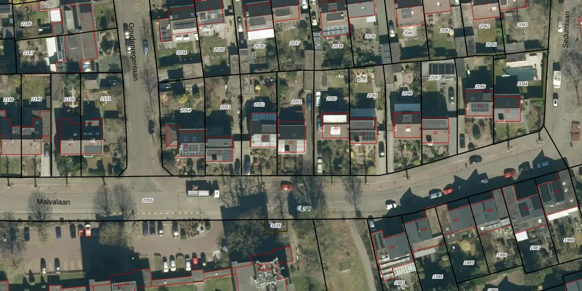 Malvalaan 21 is gelegen op kadastraal perceel AAL01E2051. Deze kadastrale aanduiding is uniek en wordt gebruikt door het Kadaster om eigendomsrechten en andere zakelijke rechten vast te leggen. Het perceel maakt onderdeel uit van de kadastrale gemeente Aalst Noord-Brabant.