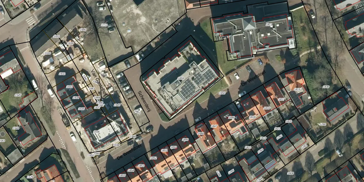 Scheerderij 19 is gelegen op kadastraal perceel WRE02C1859. Deze kadastrale aanduiding is uniek en wordt gebruikt door het Kadaster om eigendomsrechten en andere zakelijke rechten vast te leggen. Het perceel maakt onderdeel uit van de kadastrale gemeente Waalre.