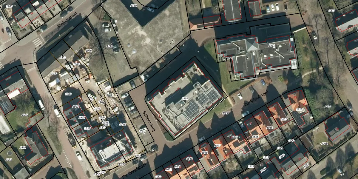 Scheerderij 9 is gelegen op kadastraal perceel WRE02C1859. Deze kadastrale aanduiding is uniek en wordt gebruikt door het Kadaster om eigendomsrechten en andere zakelijke rechten vast te leggen. Het perceel maakt onderdeel uit van de kadastrale gemeente Waalre.