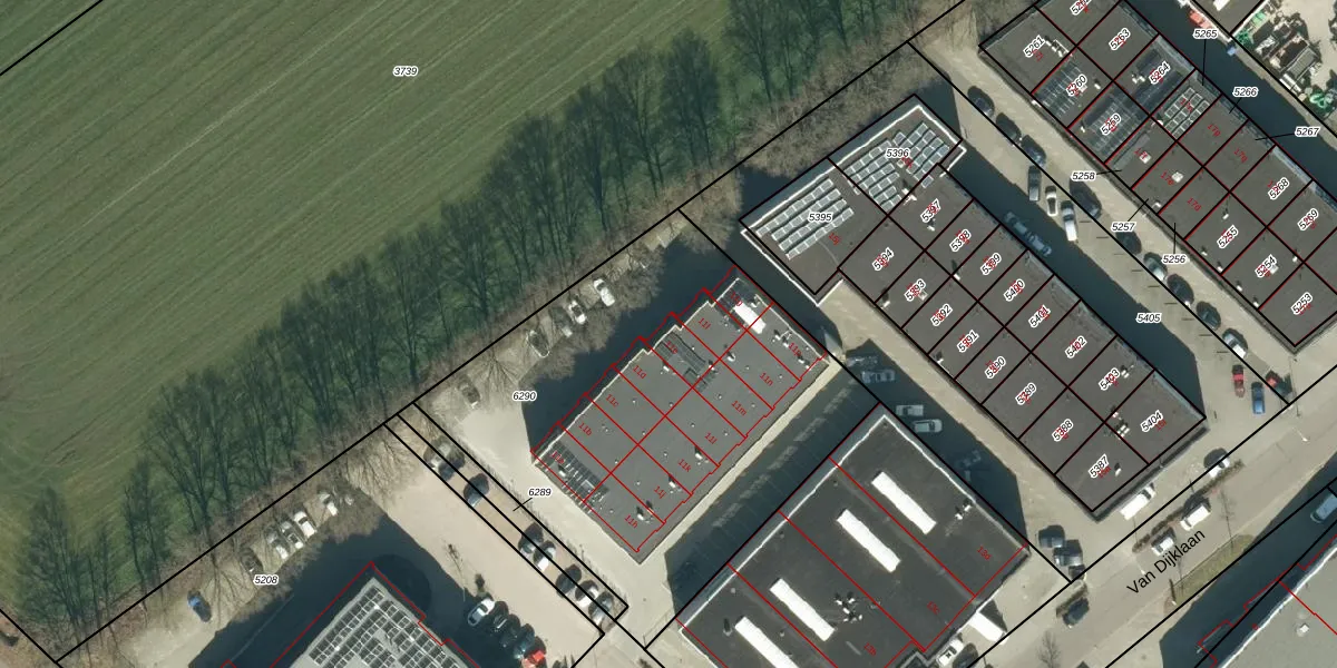 Het perceel waarop Van Dijklaan 11-e staat heeft een oppervlakte van 2249 m². Dit is een zeer groot perceel. De perceeloppervlakte wordt geregistreerd door het Kadaster. Gedetailleerde informatie over de maten van dit perceel kunt u vinden in het rapport Kadastrale kaart met maatvoering van Van Dijklaan 11-e.