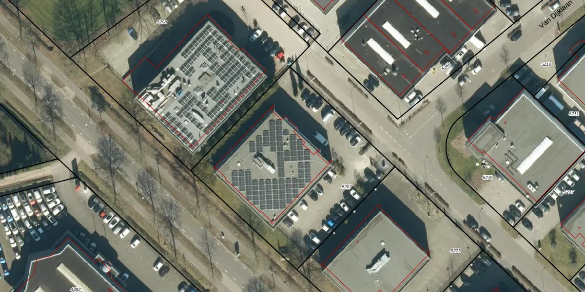 Het perceel waarop Van Dijklaan 7 staat heeft een oppervlakte van 2428 m². Dit is een zeer groot perceel. De perceeloppervlakte wordt geregistreerd door het Kadaster. Gedetailleerde informatie over de maten van dit perceel kunt u vinden in het rapport Kadastrale kaart met maatvoering van Van Dijklaan 7.